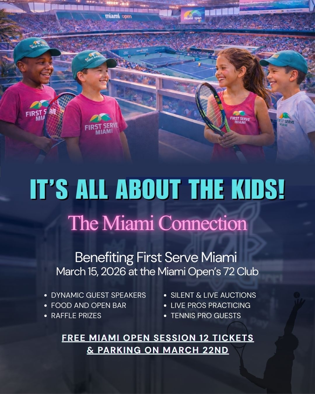 First Serve Miami is a non-profit organization dedicated to providing underserved youth in Miami with access to tennis, education, and life skills development. Our programs are designed to inspire young people to reach their full potential, both on and off the court.